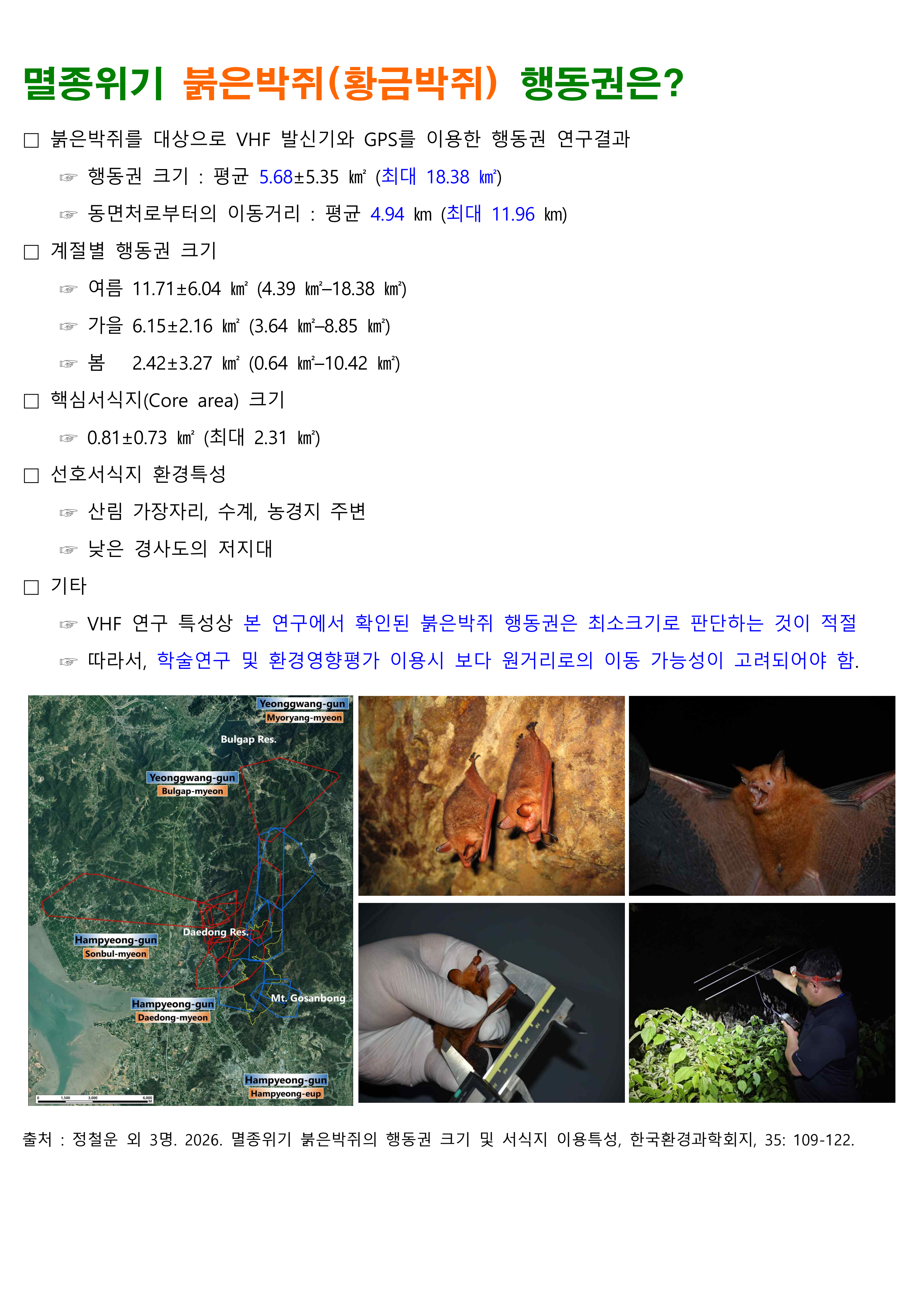 멸종위기 1급 붉은박쥐(황금박쥐) 행동권 크기는?